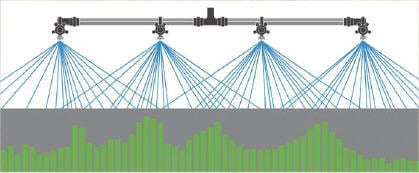 Mettez le système sous pression et effectuez un contrôle visuel de la répartition de la pulvérisation de chaque buse de pulvérisation. Assurez-vous que les sections de la flèche fonctionnent de manière uniforme.